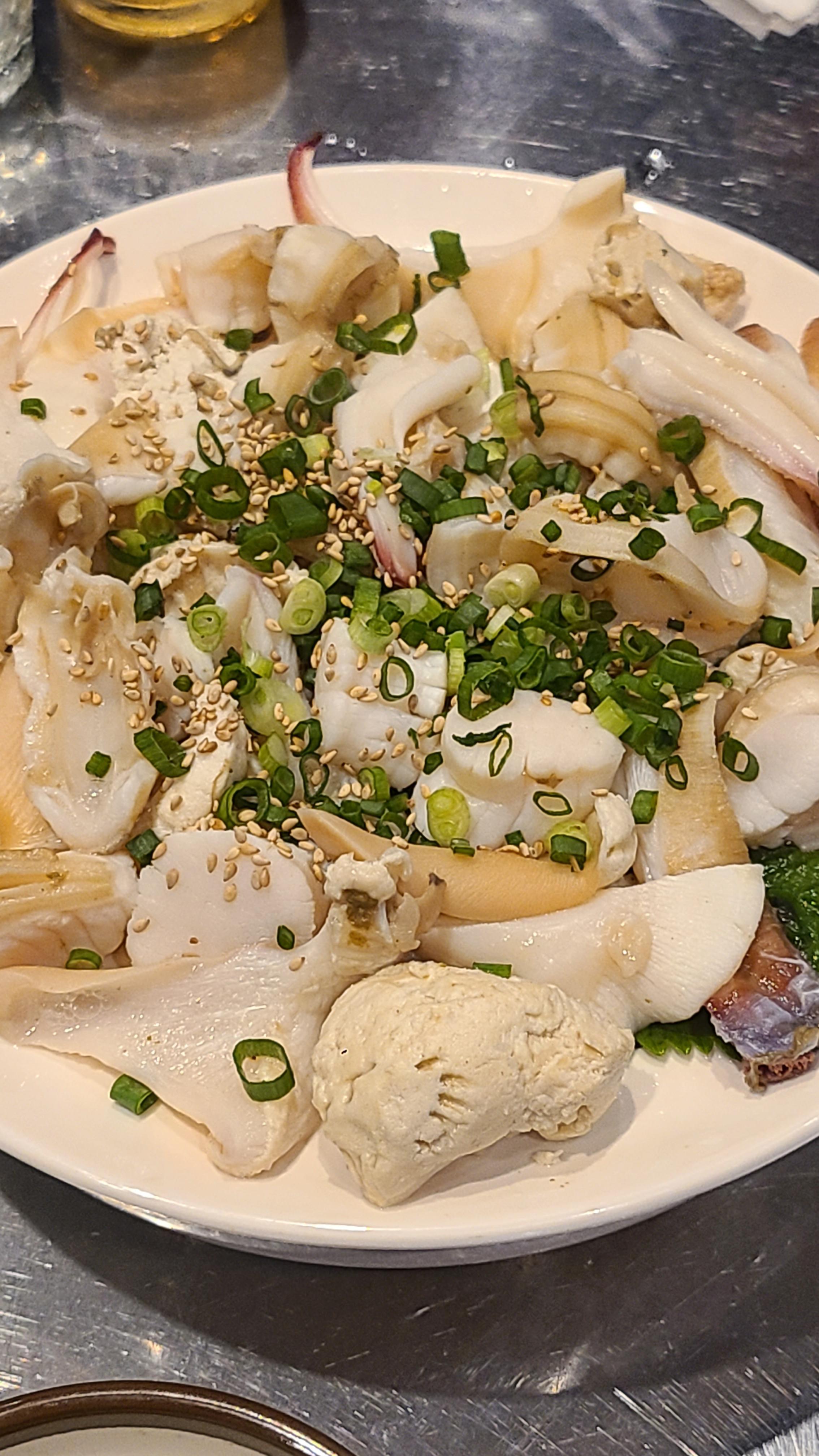 맛은 설명하자면 관자+돼지껍데기+막창(?) 같은 오묘한 맛.